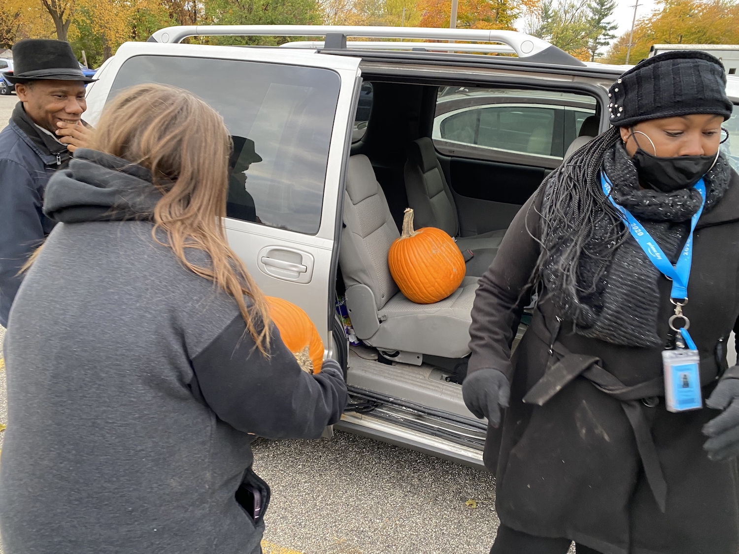 About 3 dozen employees from One Love Logistics and Amazon parked out on the Streams of Hope campus and handed out pumpkin carving kits, Robinette’s apple cider, and spooky Hallowen books to neighborhood families. About 40 families were able to receive this kind gesture from our partners.